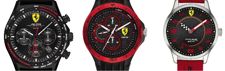 Proprio in questi giorni è stata presentata la nuova Ferrari S1000 con un rosso che tende all’amaranto, gli orologi della Scuderia Ferrari invece sono fedeli al tradizionale Rosso Ferrari. Collezione Pilota Evo cassa in acciaio ø 44 mm con lunetta tachimetrica, quadranti sunray, bracciali o cinturino in pelle; Pista, cassa ø 44 mm in acciaio o abs e Pitlane, ø 34 mm, con orologi vivaci e adatti a un pubblico giovane che apprezzerò senza dubbio la lancetta delle ore che riprende la bandiera a scacchi del traguardo. Movimenti al quarzo,