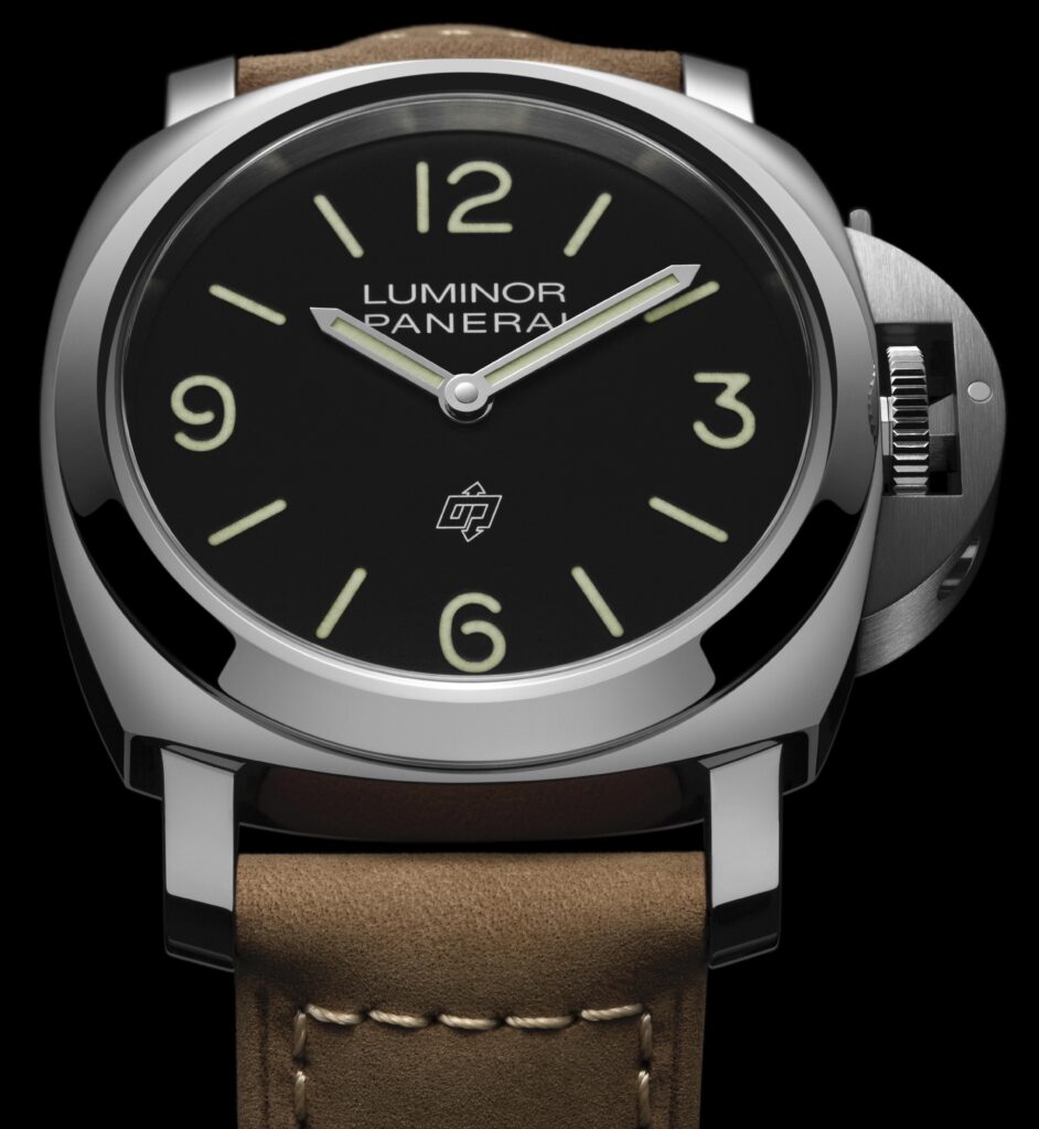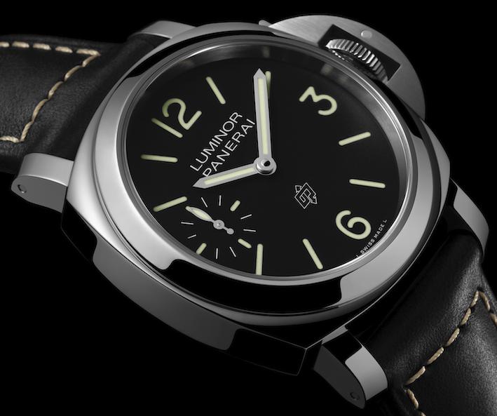 Two Luminor manual winding, three days and case ø 44 mm, have been unveiled, both with new style for Logo: on one second hand at 9; both dial are black.