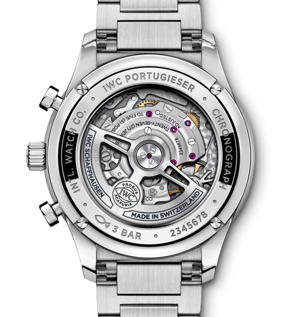 IWC dopo le versioni del Portoghese automatico in acciaio e in oro, ø 40 o 42 mm, presentate virtualmente in aprile, ancora focus su questa collezione con il cronografo in acciaio, cassa ø 41 mm, dotato di un nuovo bracciale; che sarà disponibile anche per gli altri modelli della collezione nata vent’anni or sono e che resta tuttora molto importante nelle scelte degli appassionati. Anche per i dettagli il nuovo bracciale in acciaio attira gli sguardi con le superfici levigate e satinate e la chiusura a farfalla, che cinge con sicurezza il polso.