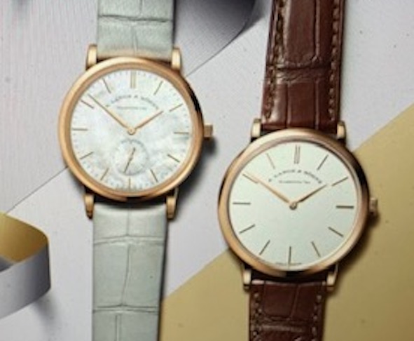 Ancora Alta Orologeria con la maison di Glashuette che suggerisce, nella sua vasta produzione, due Saxonia Thin in oro rosa, per lei, cassa ø 35 mm quadrante in madreperla, movimento manuale e per lui un automatico ø 38,5 con quadrante silver.