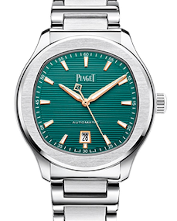 Piaget al femminile ha una serie di gioielli che, come soggetto, hanno una rosa, perfetti per un’occasione come quella di San Valentino; bella quest’anno l’iniziativa di supporto al Juliet Club, associazione di volontari che mantiene viva la leggenda di Romeo e Giulietta, rispondendo alle lettere indirizzate alla celebre coppia. Per la ricorrenza del 14 Febbraio Piaget ha chiesto ai ragazzi della generazione Z di scrivere una lettera proprio a Giulietta inviandola a piaget@julietclub.com. Però si può scegliere, avendone le possibilità economiche, anche un orologio maschile per San Valentino con il proprio amore. A parte le recenti versioni squelette delle quali abbiamo giù scritto, ecco una delle più recenti versioni del bellissimo automatico Polo in acciaio, ø 42 mm con quadrante verde lavorato a righe orizzontali.