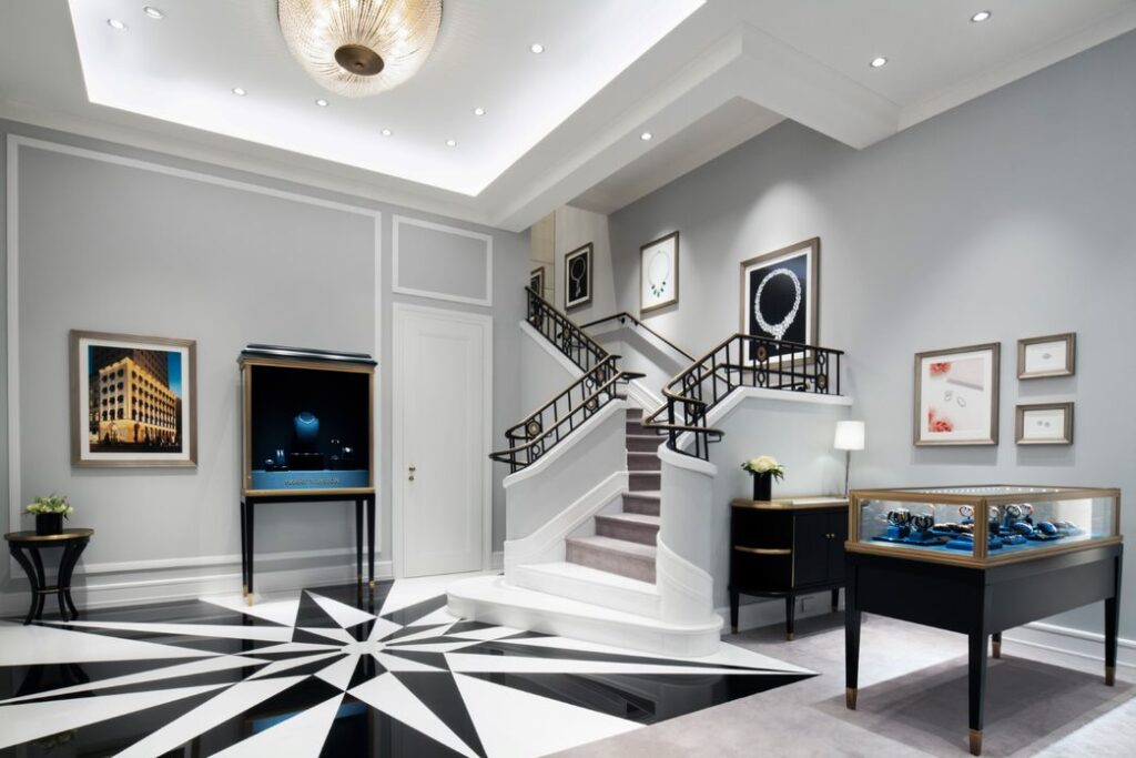 Curiosità a parte, parliamo sempre di punti vendita siano essi negozi o, alla francese, boutique, che probabilmente devono la scelta di “Salone” per via delle superfici, il Retail Salon milanese di Harry Winston occupa oltre 3.800 metri quadrati e si presenta come un elegante appartamento privato arredato classicamente; colori tortora e grigio scuro, pavimenti in marmo, mobili nel gusto della Maison con bronzi ed elementi in lacca, lampadari di cristallo e una scala che unisce i piani. Diverse le sale private e numerose le cosiddette gallerie tematiche dedicate alla sposa e alle collezioni di gioielli, orologi, diamanti e altre pietre preziose.