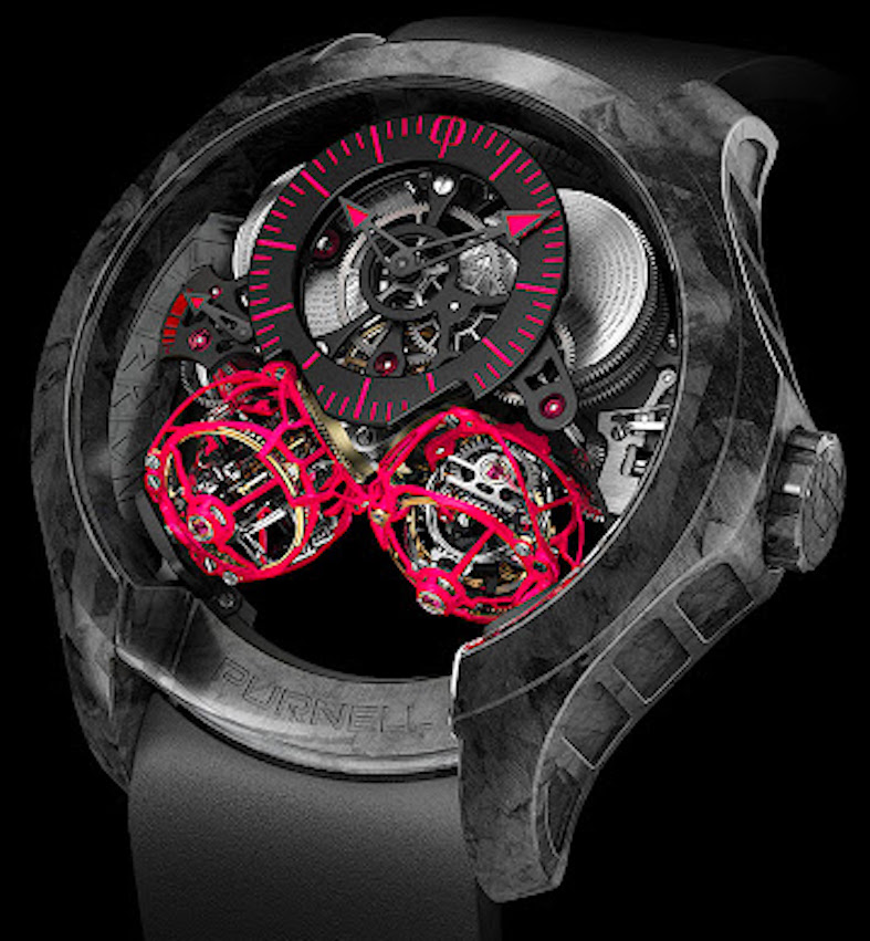 Ecco quanto abbiamo scritto nel primo E-book di soloPolso dopo il S.I.H.H. ginevrino del 2013: “l’atelier, fondato da Cecil Purnell, orologiaio inglese nel 1918, ha visto la passione orologiera svilupparsi anche nel nipote Johnatan Purnell che nel 2006, con il socio Stéphane Valsamides, ha aperto una micromanifattura specializzatasi negli scappamenti a tourbillon. Nel 2010 ha presentato il movimento Calibro CP3000 sviluppato e realizzato in house dando vita a una produzione di segnatempo molto curati. A W&W, con la collaborazione del Maestro orologiaio Eric Coudray, ecco l’Escape II Carbon il cui movimento ha le gabbie dei tourbillon sferici tri-assiali che ruotano in direzioni opposte a velocità differenziate (8, 16 e 30 secondi), oltre alla versione green ci sono anche altri colori. Infine L’Escape Treasure Baguette Double Spherion, primo complicato femminile ha la cassa, anse e lunetta impreziosite con diamanti baguette”.