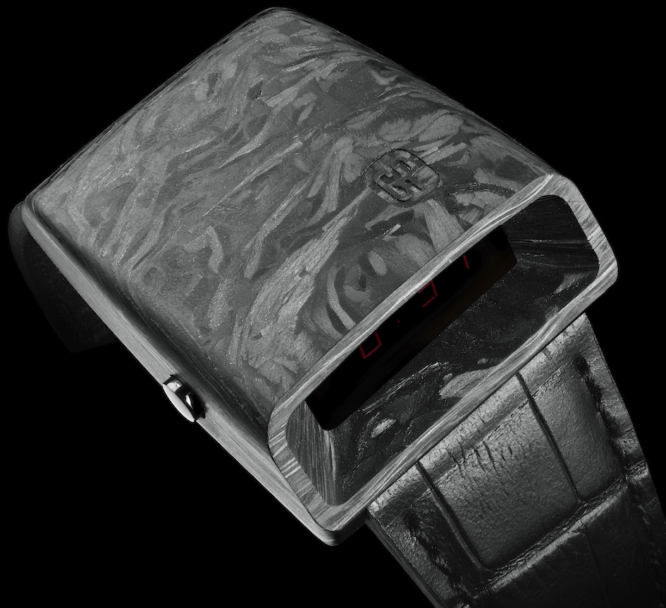 Di Girard-Perregaux x Bramford Watch Departmenet è La Casquette. Questo segnatempo ci costringe a fare un grande passo indietro e arrivare agli anni ’70 quando in epoca del quarzo Girard-Perregaux presentò Casquet che mostrava con Led il trascorrere del tempo (tuttora in rete se ne trovano in vendita). Il segnatempo al quale ha collaborato il Bramford Watch Dep il modello del passato era in acciaio o placcato oro giallo, quello che sarà messo all’asta è in carbonio con fondo e pulsanti in titanio grado5 e cinturino in pelle con fibbia in ceramica high-tech e titanio; sul fondo la dicitura Only Watch. Il movimento al quarzo d’ultima generazione, oltre a ore, minuti e secondi mostra anche un secondo fuso orario, la cronografia e una data segreta, per ricordare al proprietario appuntamenti o anniversari e a proposito di anniversari ricordiamo che Girard-Perregaux ne festeggia uno importante il 230°; infine la custodia è stata appositamente ideata e realizzata da Bamford watch Dep.