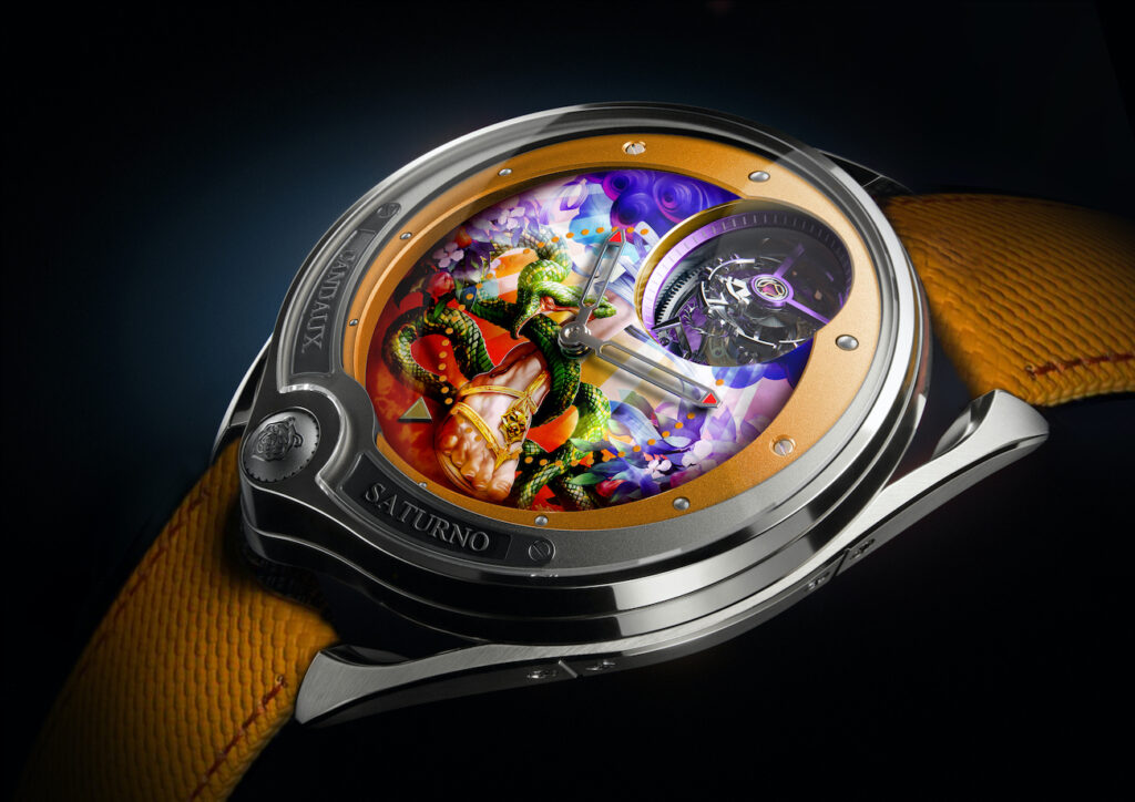 David Candaux rappresenta la quarta generazione di una famiglia di orologiai nella Valle de Joux, e si è fatto le ossa lavorando da Jaeger-LeCoultre nel reparto dei grandi complicati, poi nel 2011 decise di aprire un suo laboratorio; recentemente incontrò Mikki Saturno, all’insaputa l’uno dell’altro, entrambi stavano lavorando a un’opera che avevano chiamato Genesis.