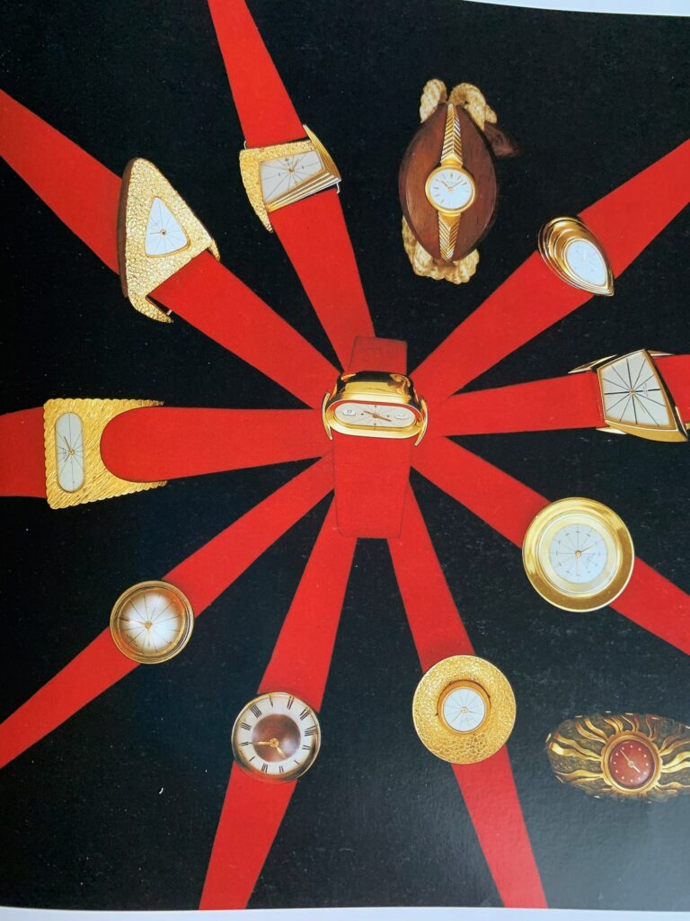Dal primo pubblichiamo la fotografia di pag.155 con una rosa di dieci orologi da polso su cinturini rossi, più due altri modelli, che formavano una serie di prototipi la maggior parte dei quali non fu mai messa in produzione e con il senno di poi diciamo che è stato un vero peccato.