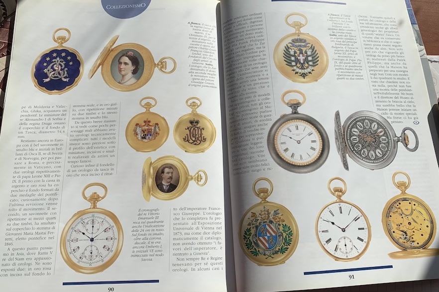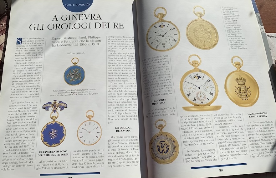 Proprio alla mostra dedicata agli Orologi Reali, nel 2005 dedicai un ampio articolo anche perché oltre alla Regina Vittoria e allo Zar, citati in tutti i CS, erano esposti orologi di Casa Savoia: un Tasca d’oro con l’iniziale di Re Umberto I in diamanti e uno in argento del Papa Leone XIII; nel catalogo che accompagnava la rassegna c’erano anche brevi cenni sulle vite dei proprietari, molti dei quali non erano certo da invidiare; tra gli aneddoti: un Tasca con il ritratto dell’Imperatore Francesco Giusepe fu presentato all’esposizione di Vienna nel 1873, ma non “avendo ottenuto il favore dell’Imperatore, tornò a Ginevra; la Corte russa ordinò a Patek Philippe una serie di orologi che lo Zar avrebbe regalato, ma la Maison rifiutò perché troppo impegnata, con l’occasione chiese anche notizie di un Tasca donato sette anni prima… con una lettera di scuse Imperiali arrivò a Ginevra un servizio da vino, poi esposto nel Museo.