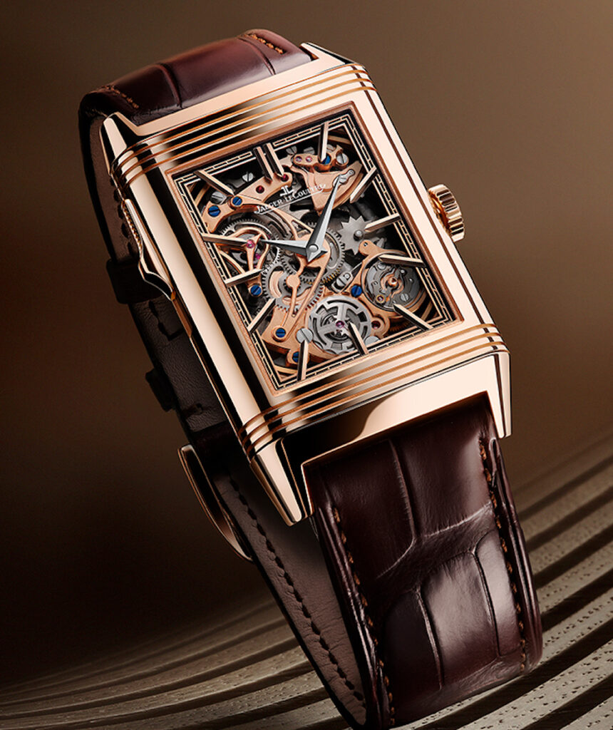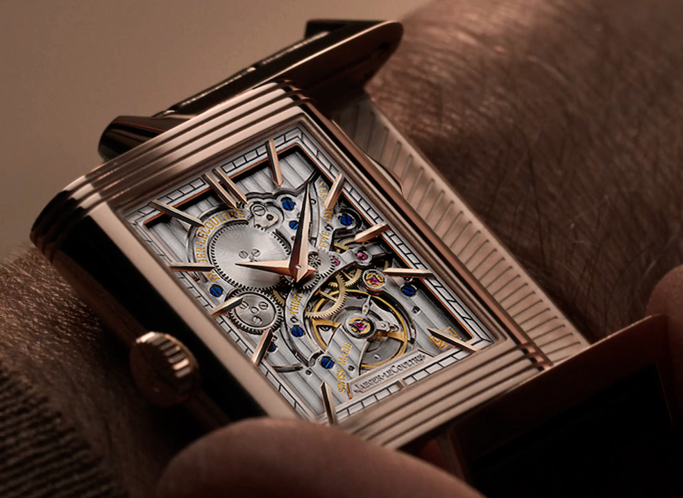 Per il 90° anniversario del suo orologio icona Jaeger-LeCoultre ha realizzato una versione del Reverso Tribute, inserito in una cassa di oro rosa mm 51,1×31 il cui quadrante principale lascia vedere il Calibro 944 a carica manuale di Manifattura dotato della Ripetizione Minuti.