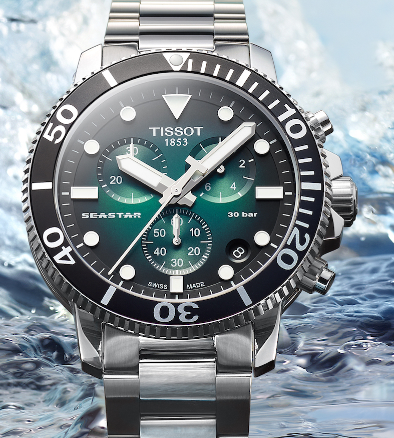 Eventi agonistici a parte un’altra novità sportiva di quest’anno è il Seastar 1000 Quartz Chrono con cassa in acciaio 316L ø 45,5 mm w.r. a 30 bar, corona a vite, lunetta in alluminio girevole in senso antiorario, movimento al quarzo, bracciale in acciaio con estensione, chiusura di sicurezza o cinturino in caucciù con chiusura standard; lancette luminescenti con minuti contrassegnati sul quadrante, e ogni cinque minuti sulla scala tradizionale per i subacquei, contatori ore e minuti con luminescenza verde.