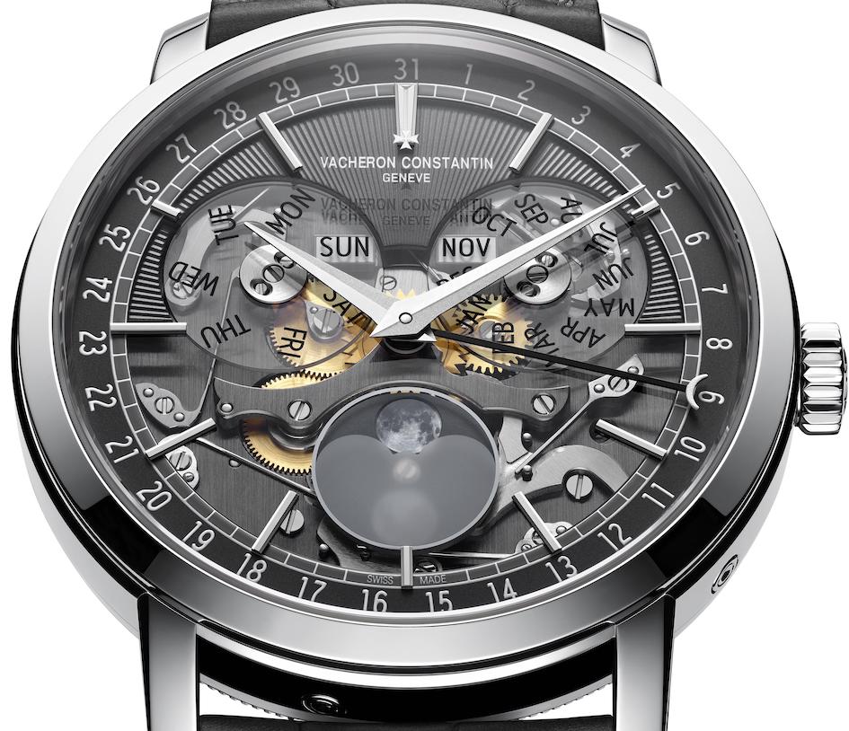 Pochi giorni fa infine Vacheron Constantin ha svelato un’altra versione in oro rosa o bianco, detta Open Face perché, dal quadrante in vetro zaffiro scheletrato, si possono ammirare grazie alla trasparenza delle indicazione del calendario, vari componenti del movimento, al quale il colore grigio ardesia dona un aspetto speciale.