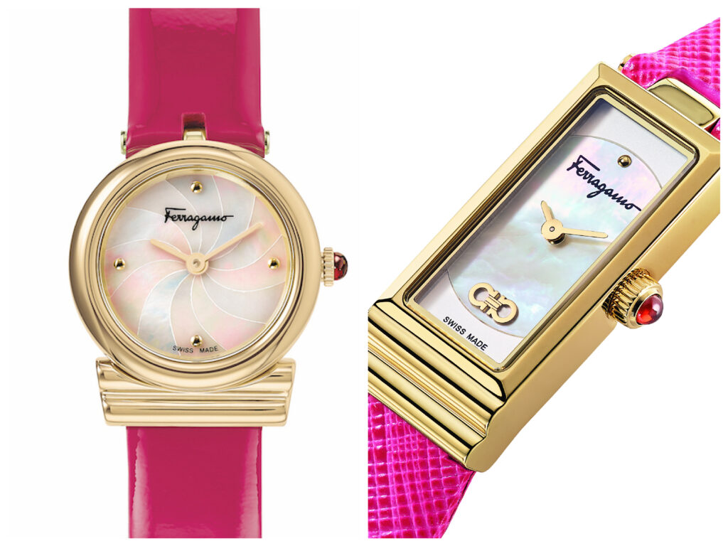 FERRAGAMO Infine se potete aspettare fino a Marzo, mettendo un bigliettino al posto dell’orologio, vi ricordiamo la collezione Gancini di Ferragamo con cassa rotonda ø 22 mm in acciaio o trattata IP yelow gold, quadrante in madreperla, cabochon rosso, movimento al quarzo svizzero ETA 901.001, cinturino rosso oppure la versione rettangolare Essential cassa in acciaio IP Yellow Gold 14×33 mm, quadrante in madreperla con il simbolo Gancini, cabochon rosso, movimento al quarzo svizzero Calibro Ronda 1032 , cinturino in pelle rossa.