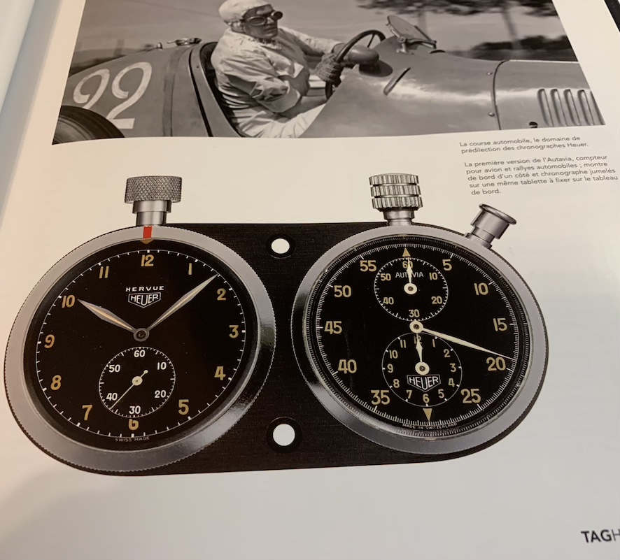 Il primo Autavia che ricordiamo fu un cronometro di bordo che sul quadrante del segnatempo a destra recava, nei primi anni ’30, questo nome, ne pubblichiamo la foto ripresa dal libro di Constantin Parvuvlesco “TAG Heuer Le Temps Maitrisé” pubblicata da E-T-A-I nel 2012.