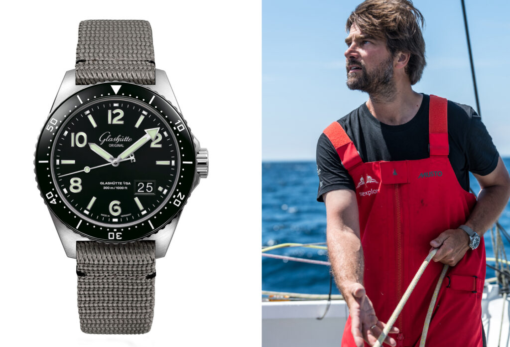 Hermann ha fatto quattro volte in giro delmondoin vela ed è stato, nel 2020, il primo tedesco a prendere parte alla Vendée Globe.80 gg in solitario, terminando quinto. Tra i programmi futuri di questo quarantunenne che vive ad Amburgo, l’Ocean Race 2022-2023, un giro del mondo della durata di sette mesi. Al suo polso l’automatico SeaQ Date Panorama, in acciaio ø 43,20 w.r. a m. 300, robusto e affidabile per affrontare ogni esigenza climatica; il movimento di Manifattura è il Calibro 36.13; A/h 28.800. riserva di carica 100 h; platina a tre-quarti di Glashütte con decorazione a nastro; spirale del bilanciere in silicio.
