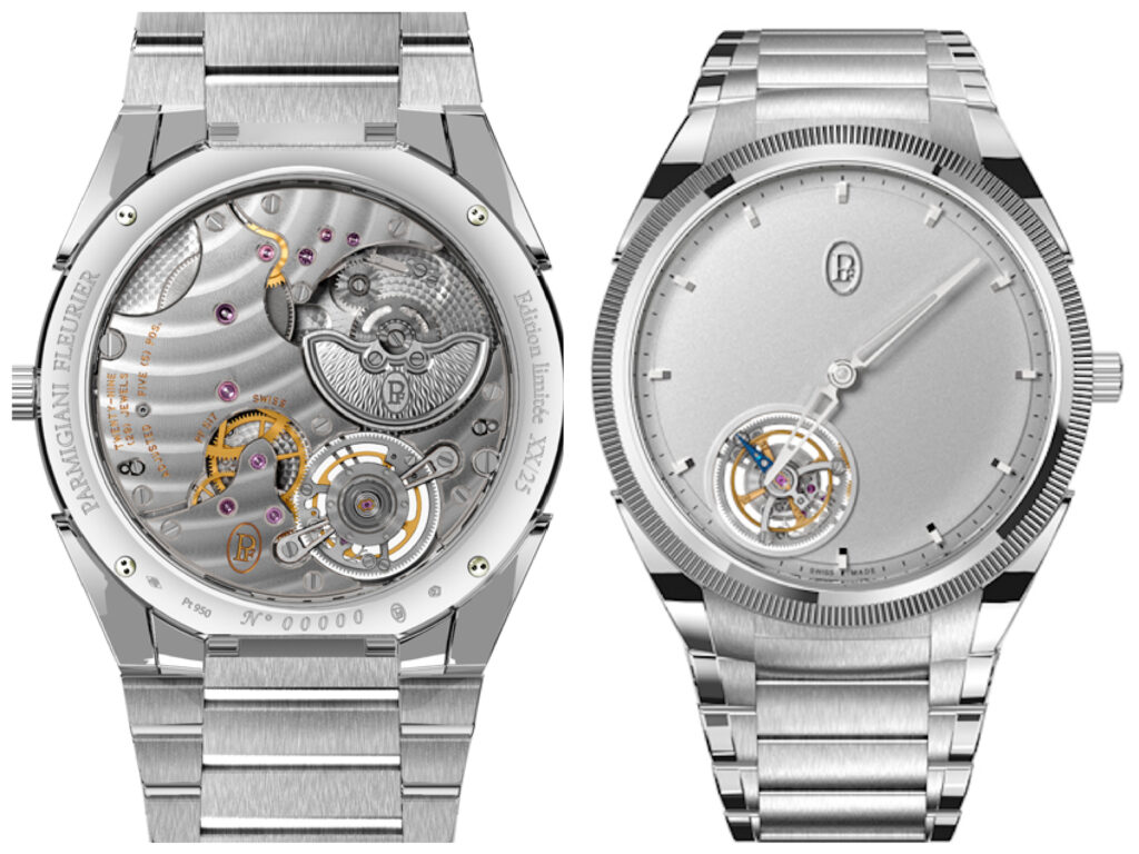 Nella. cassa in platino ø 42 mm, w.r.a m.100 e spessore mm 8,6 con bracciale in platino, è alloggiato il movimento di Manifattura Calibro PF517 automatico con tourbillon volant e microrotore in platino; sono in platino anche la lunetta e il quadrante, riserva carica 48 h, A/h21.600, rubini 29. Sul fondello con vetro zaffiro l’incisione del numero di serie. L’edizione è in tiratura limitata a 25 esemplati.