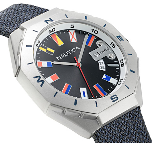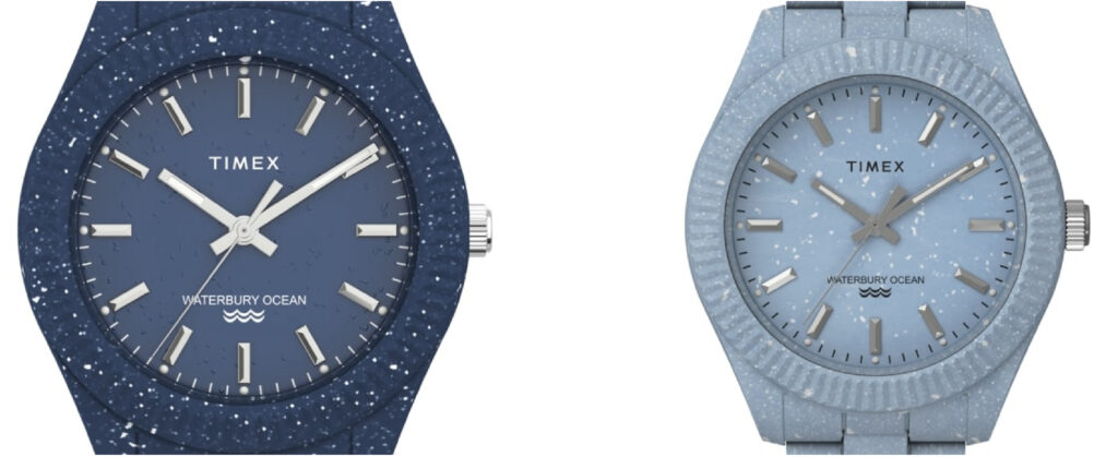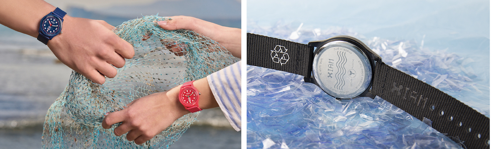 Proseguendo, nelle foto sotto, i Timex Waterbury Ocean Plastic, ø 41 o 37 mm nei colori blu o azzurro (sempre in una fascia di prezzo molto accessibile) e i Nautica della collezione Nautica Loves the Ocean con i cinturini danesi realizzati in Revive 1, un tessuto intrecciato recuperato da bottiglie di plastica; sul quadrante indici con le bandierine delle segnalazioni nautiche, anche il packaging è in materiale riciclato, un Code reindirizza al sito della Marca e ai suoi progetti.