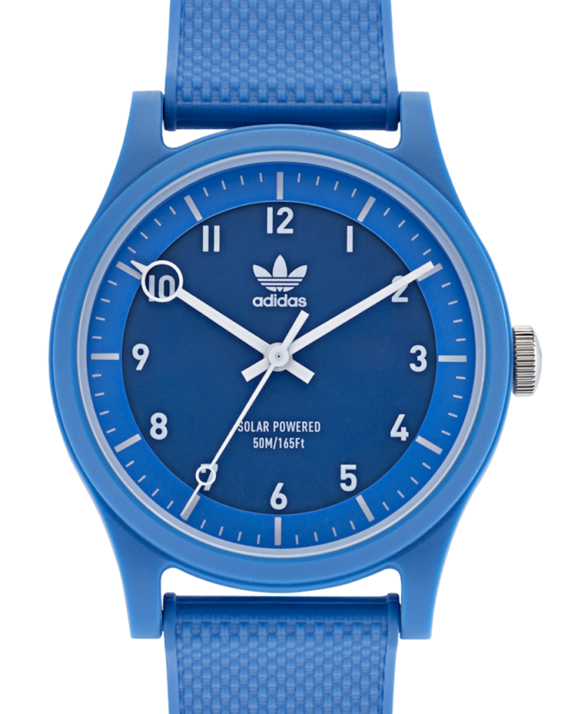 Ancora plastica riciclata dai rifiuti marini per i nuovi Adidas del Project One, nella foto sotto, proposti in 4 colori, blu, grigio, rosso e turchese, il movimento è al quarzo e si ricarica con la luce