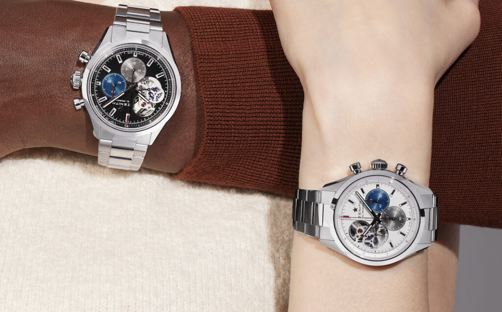 Prim’attore indiscusso in questa saga cronogafica il movimento El Primero 3604 (nella foto sopra) che equipaggia i Chronomaster Open, mentre le due versioni della novità presentano un aspetto non solo cromatico, ma anche pacifista: la versione con quadrante nero è indossata sa un braccio femminile bianco, quella con quadrante bianco su un braccio maschile nero.