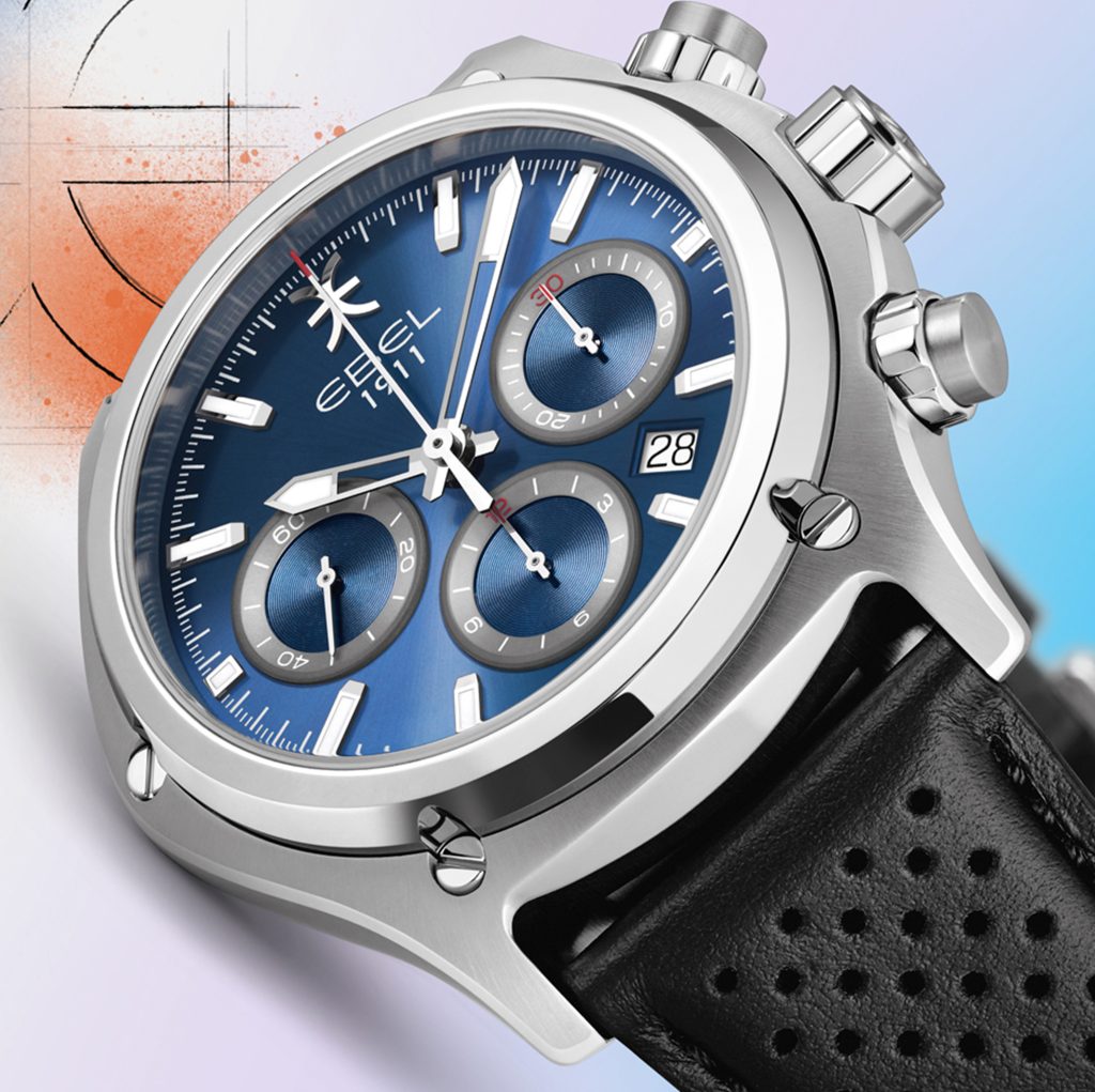 L’eredità di quegli anni, almeno sotto l’aspetto estetico, si tramanda anche nel cronografo attuale. Queste le caratteristiche del nuovo modello: cassa in acciaio inossidabile levigato e satinato, ø 44 mm w.r. a m.100, spessore mm 13,65, vetro zaffiro anche sul retro, quadrante blu trattato galvanicamente e lavorato a raggi di sole, con indici in Super-Luminova bianco e minuteria bianca; logo e lancette rodiate, data alle 4,30. Il movimento svizzero è il Sellita Calibro SW610a a carica automatica, sul rotore il logo composto dalle due E contrapposte, a ricordare l’importanza del passato insieme alla ricerca dell’innovazione per il futuro. Infine il bracciale in metallo con il tradizionale disegno delle maglie a onde, ha la fibbia deployante, ma si può scegliere anche il cinturino nero in pelle con fibbia a ardiglione.