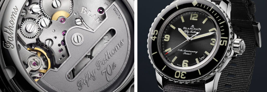 Blancpain has unveiled new Fifty Fathoms 70° Anniversary, steel case.w.r.m.300, Caliber 1315 five Days power, available only on line.