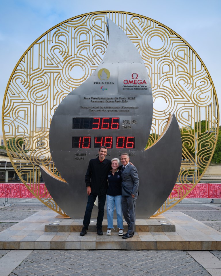 In attesa del 28 Agosto 2024 quando inizieranno i Giochi Paraolimpici la nostra campionessa è stata fotografia sotto al mega Omega Countdown tra Raynald Aeschlimann, Presidente e CEO di OMEGA, e Tony Estanguet, Presidente di Parigi 2024.