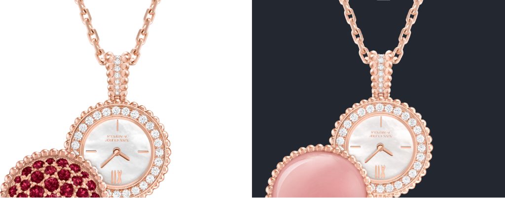 Nella collezione attuale sono compresi anche i cosiddetti orologi a secret, quei segnatempo con pendente, da indossare con una preziosa catena d’oro; il coperchiò in pietre dure colorate o impreziosito da altre pietre incastonate a forma di fiore e per i diamanti anche nella lavorazione detta a “neve”, consente, ruotandolo, di svelare il quadrante, quasi senza farsi scorgere; per comodità di lettura il n* 12 appare in basso capovolto.