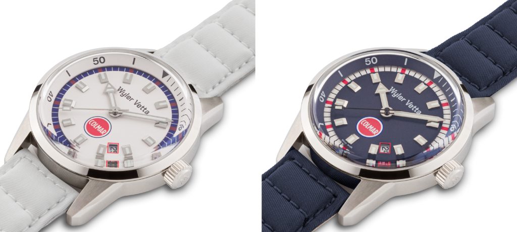 Così dopo aver scritto di cinturini evoluti non solo cromaticamente, ma impiegando materiali tecnici, riciclati, sintetici, naturali o di ultima generazione, ecco una collaborazione inedita tra Wyler Vetta e Colmar; quest’ultima, fondata nel 1923 Mario Colombo, nel 1952 fu vicina a Zeno Colò vincitore della discesa libera alle Olimpiadi invernali di Oslo e poi alla Valanga azzurra con tessuti tecnici; la famosa guaina elastica che aderiva come una seconda pelle, mentre per il grande pubblico produceva capi di abbigliamento sportivo; a proposito della guaina vorremmo qui ricordare la generosità del team italiano, guidato da Mario Cotelli, che ne fornì una a un atleta dell’est, la cui Federazione era troppo povera per dargliene una e anche grazie alla tuta quell’atleta vinse la gara.