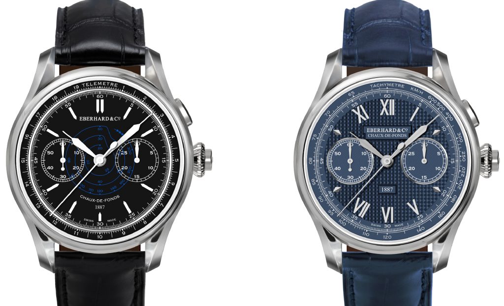 Two new versions in ùeberhard and Co. Chronographe 1887 collection, one in limited Number 250 watches with hand wound movement and one self winding movement.
