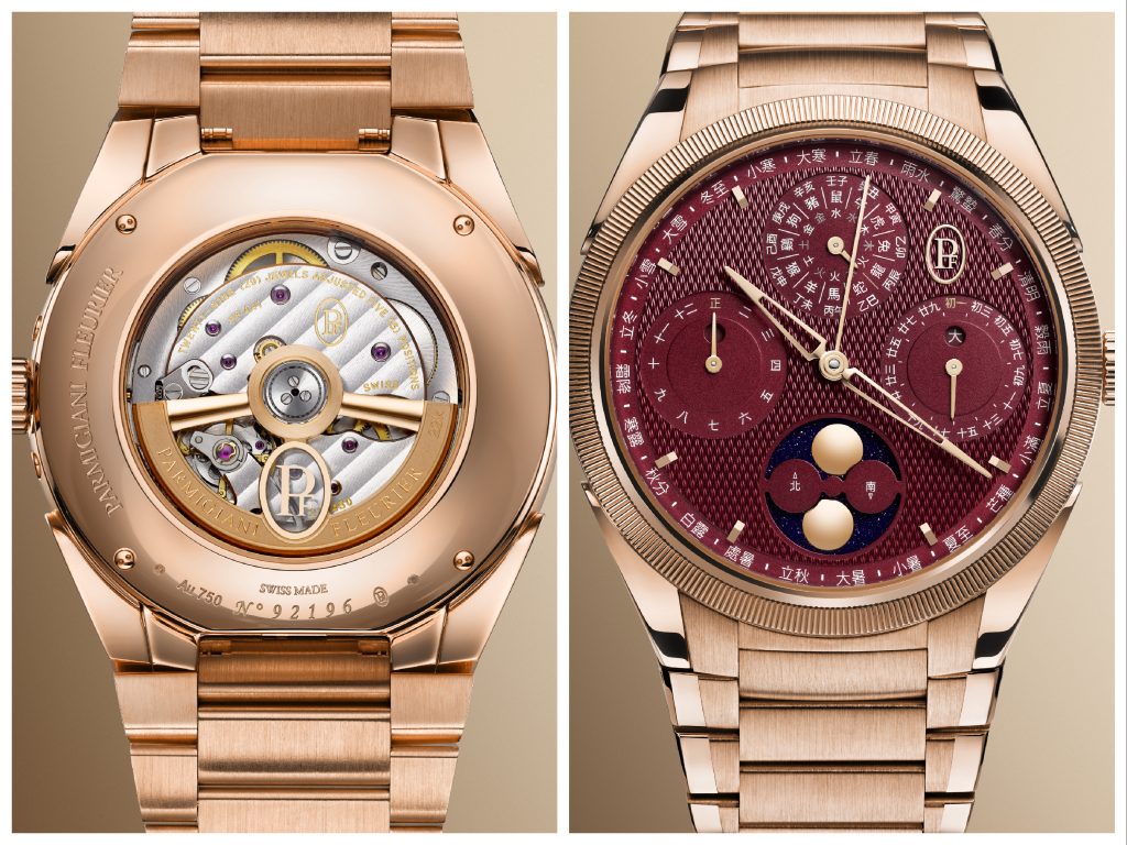 Unweiled in this January Parmigiani Fleuerier tribute to chinese culture, with sun-moon full calendar movement inside a rose gold case, dial is red.