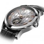 Già in occasione del suo 150° anniversario la Maison ginevrina aveva scelto questa tecnica per decorare con motivi floreali i ponti di 15 Tourbillon e anche quest’anno, per il quadrante dell’esemplare che andrà in asta a fine settembre, ha privilegiato la scultura del metallo, che non viene inciso, ma scolpito seguendo i contorni del disegno per farlo meglio risaltare. Il quadrante in oro rodiato mostra lo stemma del Principato di Monaco, circondato da una molecola di DNA a richiamare gli studi di medicina; disegno che appare anche sui movimento a carica manuale. Questo, certificato cronometro e con scappamento a tourbillon, ha la platina e i ponti in oro rosa rodiati nero, 33 rubini e quattro bariletti che, per la tecnologia Quattro brevettata da Chopard, consentono un’autonomia di 9 giorni. La cassa ø mm 43 è in platino.
