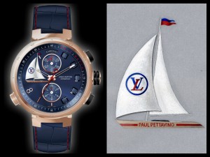 Official partner alla Coppa America 1983 e poi con la Louis Vuitton Cup, svoltasi quest’anno a San Francisco, il colosso del lusso è legato alla vela da trent’anni. In campo orologiero dopo il Tambour Spin Tme ha ideato, nel 2012, il Tambour Spin Time Regatta. Così per l’asta di Monaco, l’esemplare unico Louis Vuitton resta in tema, sia per il quadrante sia per la confezione, a fianco, il tradizionale baule.