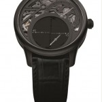 Per questo “misterioso” il trattamento ADLC (amorphous diamond-like carbon) che è stato impiegato per ponti, platina, quadrante, corona e fibbia, è una miscela di atomi di idrogeno e carbonio. Oltre a garantire diverse caratteristiche di durata e resistenza agli agenti esterni, consente di avere un colore soft non vistoso; gli si adeguano anche l’oro delle lancette, diventate nere, il quadratino dei piccoli secondi, da bianco qui proposto nero e tutte le altre indicazioni che variano tra il grigio chiaro e il nero. La cassa, ø mm 43, la lunetta e il quadrante traforato sono smerigliati; trattato ADLC anche il rotore visibile dal fondello. Infine la scritta Only Watch 2013, piece unique 1/1, conferma che non ci sarà un altro esemplare simile.