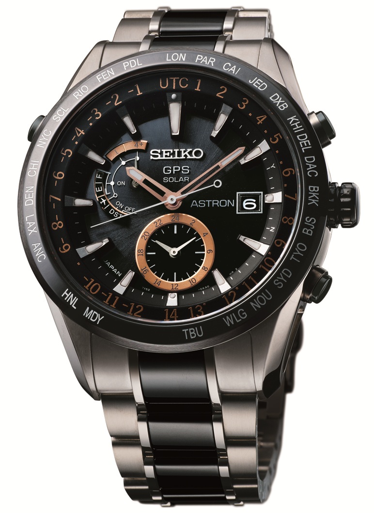 Seiko Astron GPS Solar: riconosce 39 fusi orari, una volta al giorno capta il segnale orario, si collega con 4 o più satelliti GPS orbitanti, identifica fusi e ora esatta in 30″, la precisione è di + – 15″ al mese