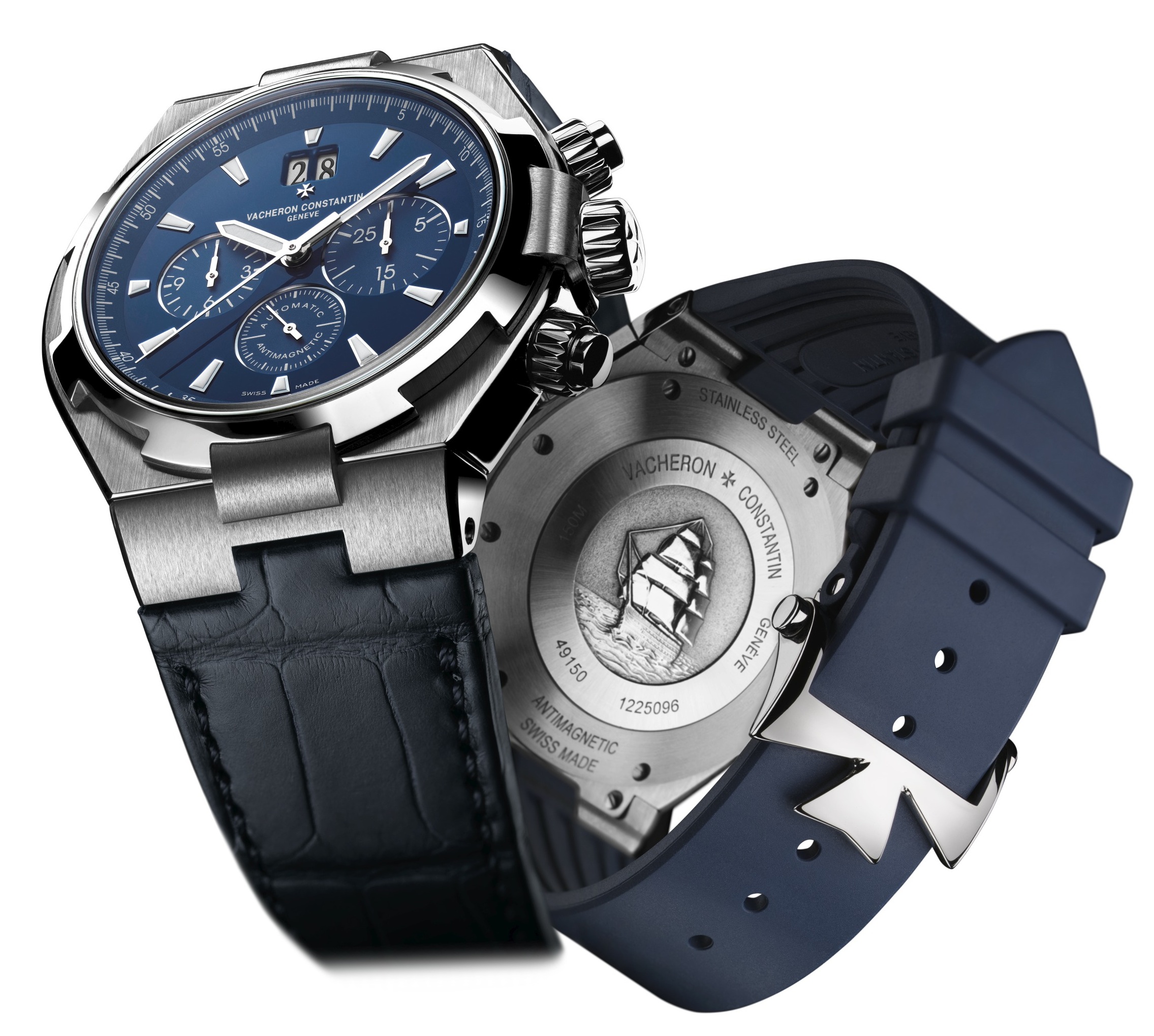 E non è solo il quadrante ad essere blu come le onde del mare, lo è anche il cinturino in caucciù vulcanizzato, che si può alternare a quello in alligatore, sempre blu; per entrambi chiusura deployante a tre lame con doppio pulsante di sicurezza. Sul fondello della cassa sub a 150 metri, la sagoma della Vespucci, simbolo di viaggi in lontani paesi mentre la lunetta con la forma a croce di Malta si riallaccia alla tradizione orologiera di Vacheron Constantin.