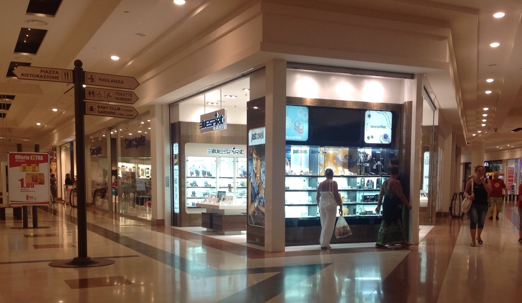 Ma è anche interessante fare pochi chilometri e guardare cosa accade vicino a noi. Come, a Milano, nel Centro commerciale Fiordaliso, che da questa primavera ospita un negozio Bluespirit. Ottima la posizione di fronte all’uscita dell’Iper con il punto vendita su un angolo e quindi con doppio richiamo. Prevalenza di bijoux rispetto agli orologi, ma questi si rifanno con grandi poster che attirano l’attenzione.