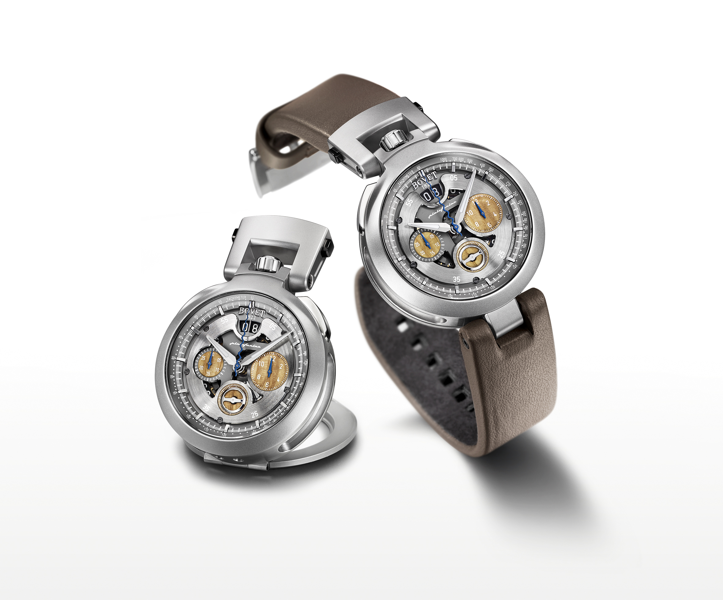 Questi Bovet, grazie al sistema convertibile AMADEO®, sono orologi da polso, da tasca, da tavolo e, per la Cambiano, anche cronografi di bordo in edizione limitata; hanno la cassa in acciaio, sono inseriti nella plancia in legno e il pilota può facilmente estrarli per indossarli al polso. Il legno, impiegato anche per il pavimento dell’auto, ha una sua storia: arriva infatti dai piloni veneziani, le cosiddette briccole.