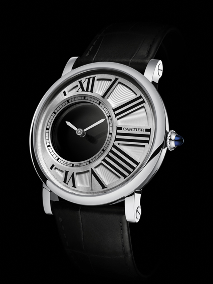 Nel 1912 Cartier stupì il mondo con le sue pendulette Misteriose dai magici quadranti. Erano preziosi complementi d’arredo per scrivanie, tavolini, caminetti . Sui mobili che le accoglievano brillavano sia per il loro valore artistico sia per la preziosità dei materiali. Impiegavano infatti oro, pietre preziose, marmi, cristallo di rocca. Ma quello che affascinava era il lento ruotare delle lancette che sembravano muoversi nel vuoto assoluto. Nella realtà invece erano erano fissate a due dischi di vetro nascosti dalla scala delle ore e azionati dal movimento. Ma l’illusione era perfetta. E’ passato un secolo e nei due Rotonde de Cartier Misteriosi da polso si ha ancora l’illusione che i componenti si muovano senza legami apparenti.