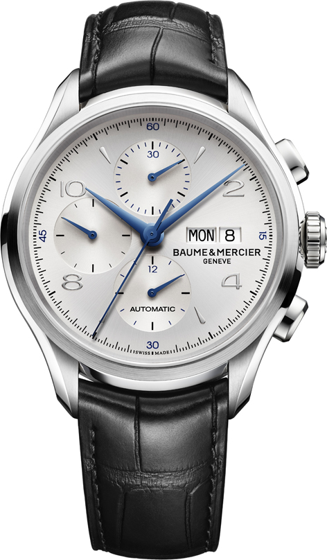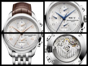 Di forma classica questi cronografi completano, per ora, la collezione Clifton che rientra nel solco della tradizione orologiera di Baume&Mercier. Già negli anni ’40/50 la maison ginevrina ha realizzato cronografi da polso con ruota a colonne, con calendario completo e modelli dotati di scale tachimetri e telemetrica, mentre sono recenti i cronografi delle collezioni Capeland, Hampton e Linea sono stati ideati e realizzati in anni recenti.