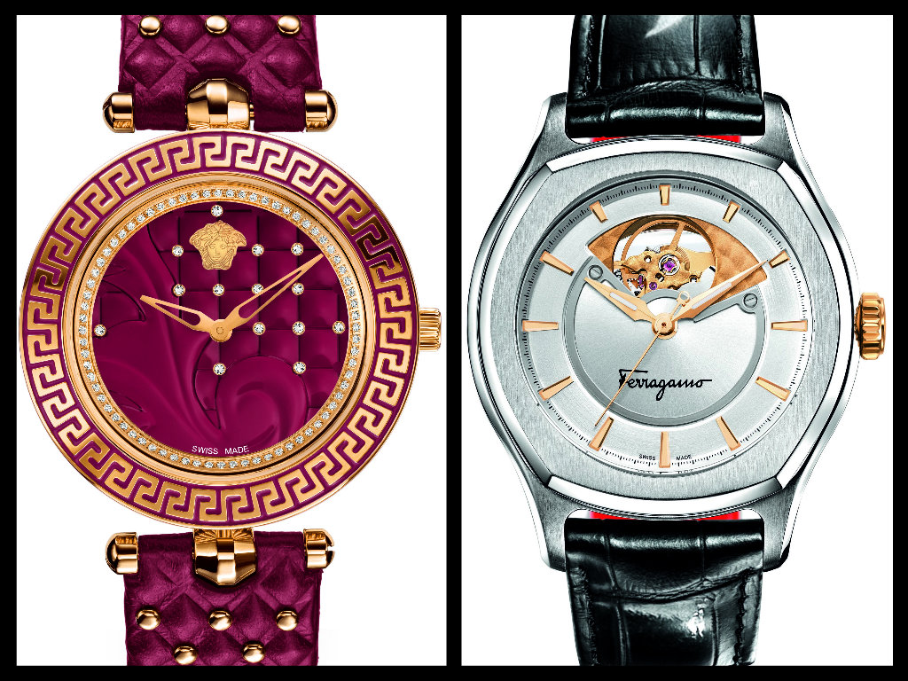 Tradizionale rosso e un nome adeguato, Vanitas, per Versace Tmepieces, mentre il Lungarno di Ferragamo Timepieces si è ispirato a Firenze.
