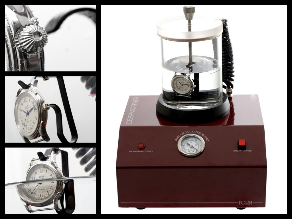 Abraham-Louis Breguet scriveva nel XIX secolo “datemi un grande olio e vi darò un grande orologio”. Oggi in questo campo l’impiego del silicio sta risolvendo molti problemi. Ma torniamo al nostro titolo che identifica un nuova macchina per testare l’impermeabilità della cassa. Mi piace il fai-da-te, ma non nell’orologeria dove troppi neo-appassionati si improvvisano orologiai e il minor danno causato è qualche segnaccio sulla cassa, non sempre facile da aprire. Però di fronte al Deep Mariner della Form faccio un’eccezione, sia per le dimensioni e il peso (5 Kg) sia per il prezzo abbastanza accessibile, soprattutto per qualche fanatico collezionista.