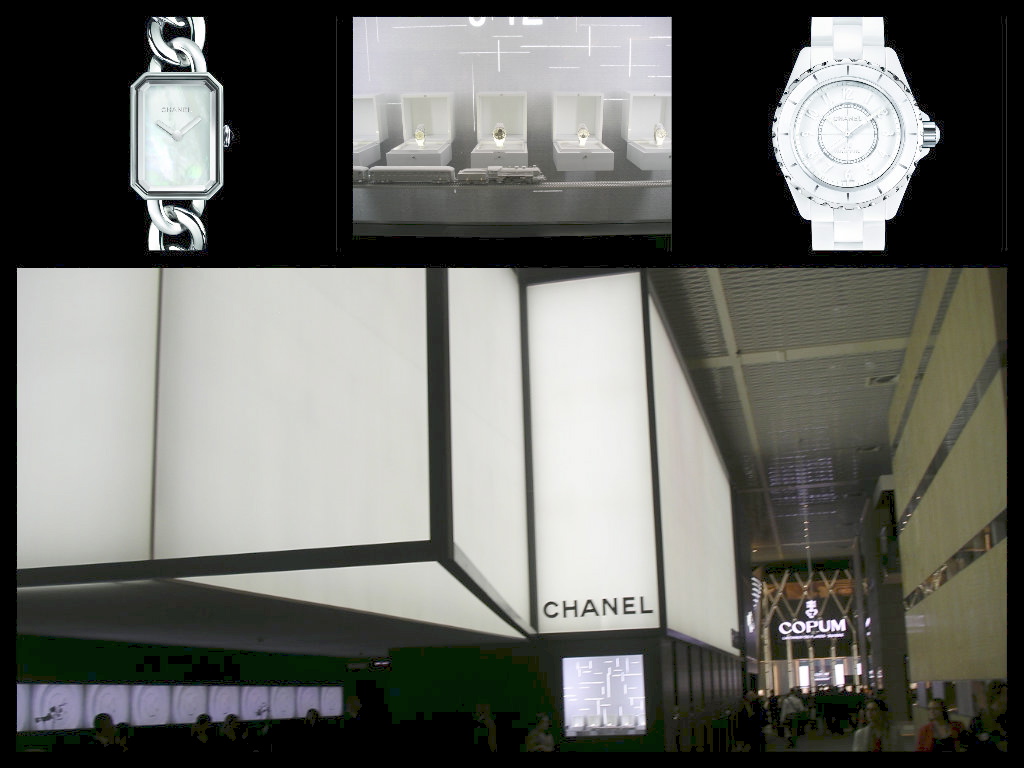 Il nuovo stand Chanel ha triplicato la superficie, ma i 1.580 mq su tre livelli sono ancora pochi per il numero di visitatori. L’architetto americano Peter Marino lo ha ideato nei colori preferiti da Mademoiselle Cocò: una base nera in alluminio e un luminoso monolite bianco. In una vetrina giocosa un trenino gira e quando torna in primo piano fa aprire le scatole, rigorosamente bianche dei J12, dove sono adagiate le novità 2013. O almeno una parte di queste.