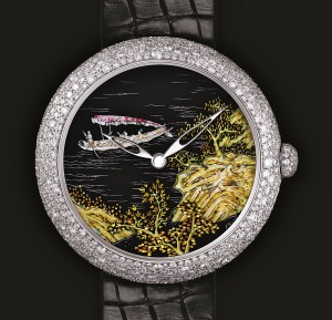 La Maison Chanel si dedica in Francia al recupero delle antiche tradizioni artigianali e proprio nel segnatempo più esclusivo del 2013 ne mostra un esempio: il quadrante è ricamato a mano con le tecniche di un tempo. Pezzi unici della linea Mademoiselle Privée differiscono per il numero dei diamanti incastonati a effetto neve o per il soggetto del quadrante grand feu con pagliuzze d’oro. Tra i dettagli: su un cielo stellato, la lancetta delle ore termina con la luna e quella dei minuti con la cometa o soggetti legati alla Cina e al Giappone. Vale anche la pena di rilevare che il movimento non è al quarzo, ma automatico.