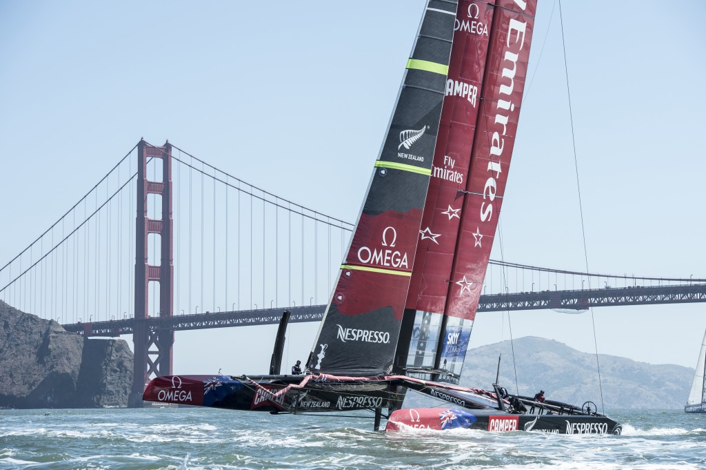 Omega anche questa volta sostiene l’Emirates Team New Zealand e lo ha presentato il 27 giugno a San Francisco. La mitica baia americana infatti sarà il teatro delle celebri regate e la foto del multiscafo AC-72 , che pubblichiamo, ne mostra uno scorcio fra i più noti: il suo ponte. Per l’occasione la Maison di Bienne ha realizzato una versione speciale del suo Seamaster.