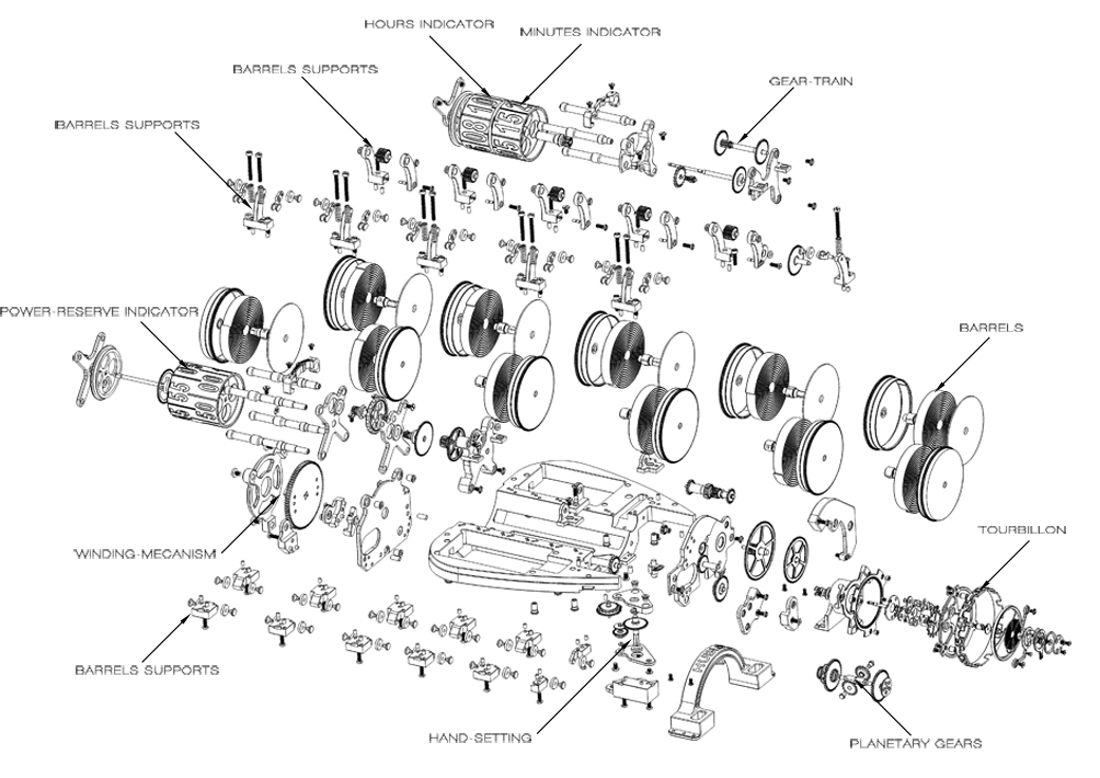 Ne ho già scritto nella cronaca della Fiera, ma vale la pena di parlarne ancora sotto il profilo del design e della tecnica, fuori dal contesto fieristico, pubblicandone anche alcuni disegni. Il Masterpiece MP-05 rappresenta la nuova tendenza che si vuole dare a un orologio che, per molti aspetti, è un “concept watch”. Quei modelli innovativi che poi vengono messi in produzione, anche se in questo caso ne sono già stati prodotti 50 esemplari numerati.