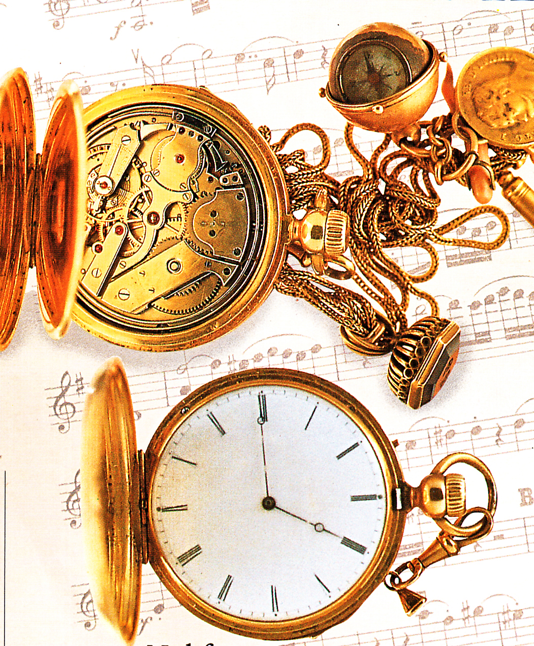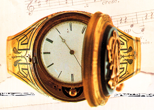 Partiamo proprio da quest’ultimo che è il più vicino alla filosofia di soloPolso, perché è un orologio da taschino inserito in un prezioso braccialetto. Secondo i gossip del tempo, questo orologio segreto è stato regalato da Verdi a Giuseppina Strepponi, non solo la sua cantante preferita, ma anche la compagna sposata nel 1859. Il dono pare fosse motivato dal desiderio del Maestro di tranquillizzare la gelosissima consorte e Giuseppina lo ricevette nel 1867 per la prima a Parigi del Don Carlos. Sempre del grande Maestro un altro orologio nella foto sotto; questa volta un Tasca d’oro Ripetizione Minuti di Charles Oudine, allievo di Abraham-Louis Breguet, ha la cuvette incisa a guillochage, ma il nervosismo della mano di Verdi, che a quanto pare lo portava sempre, ne ha consumato buona parte della decorazione.