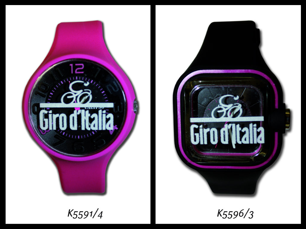Per ricordare l’edizione 2013 sono stati scelti due modelli Calypso – marchio che fa parte del gruppo spagnolo – realizzati in 500 esemplari. Sul quadrante hanno una pellicola removibile con il logo della corsa e sono in vendita a ogni tappa.