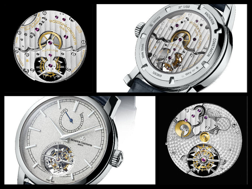 Sul quadrante, in platino sabbiato, la riserva di carica appare su un ampio semicerchio a ore 12 e per comodità di lettura ogni giorno è suddiviso in fasce di 12 ore. Nel movimento, il Calibro 2260 a carica manuale, che ha 231 componenti, i bariletti, montati a coppia, sono quattro e si scaricano simultaneamente, ma più lentamente di quanto non faccia un solo esemplare. Le alternanze ora sono 18.000, i rubini 31; risaltano i due grandi ponti e l’estetica della gabbia del tourbillon distinta dalla croce di Malta, simbolo della Marca. Finissage all’altezza della perfezione richiesta da Vacheron Constanti; il punzone del platino, PT950, è sul fondello tra le 4 e le 5, la cassa ha un diametro di mm 42 ed è in platino anche la fibbia del cinturino. Solo cinquanta gli esemplari.