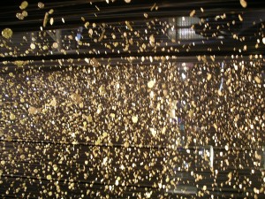 Lo stand di Citizen ha incuriosito tutti. La sua grande vetrina scintillava con migliaia di elementi in metallo, quasi una caduta di stelle, la coda di una cometa o un’anticipazione natalizia. Invece quei pezzetti che sembravano volare nell’aria erano gli sfridi delle lavorazioni orologiere dei movimenti. Per la precisione 15.ooo, che invece di essere eliminati, sono diventati elemento principe di un’arte postmoderna ideata da un giovane giapponese.