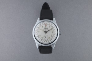 In seguito arrivano anche orologi da polso, per esempio qualche Oris come quello della foto sotto, che un privato ha prestato alla rassegna e che è stato esposto in una delle dieci vetrine dell’allestimento scenografico.