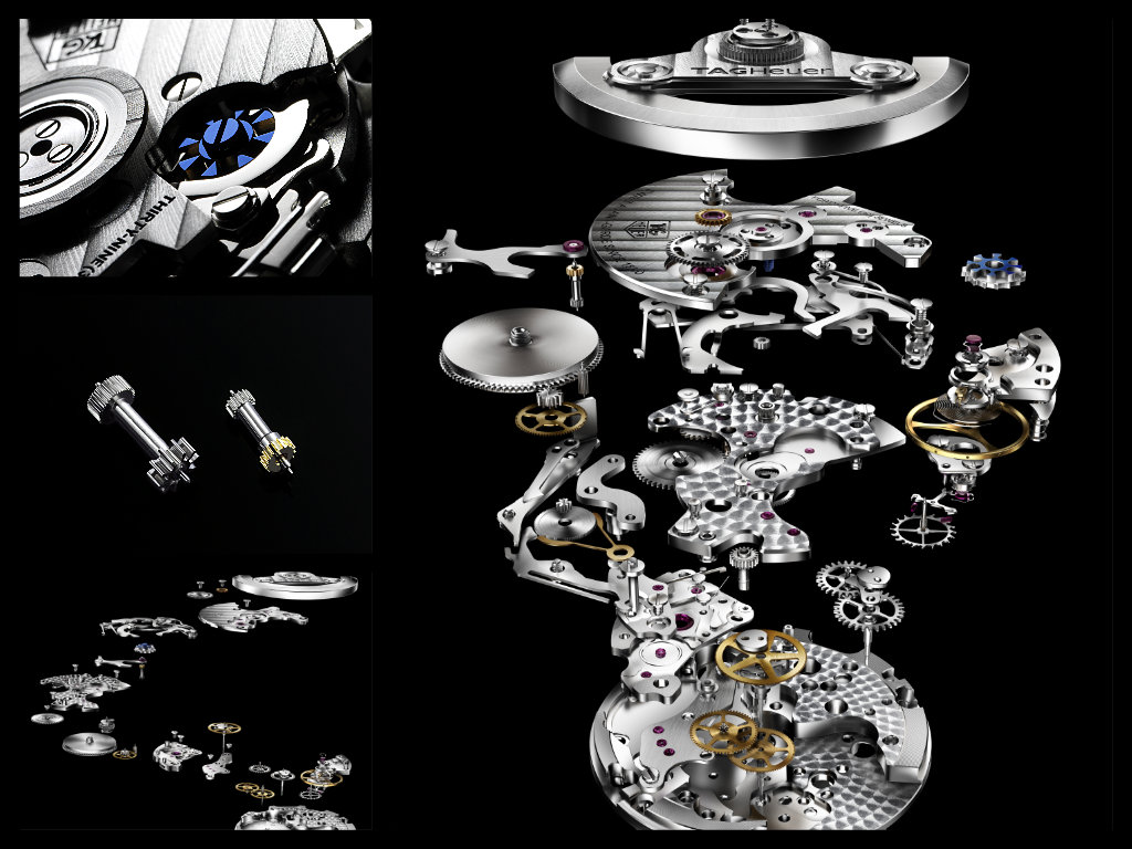 Per chi è affascinato dall’orologeria meccanica pubblichiamo gli esplosi dei due Calibri, mettendo in risalto che fra le invenzioni di Heuer è da annoverare il pignone oscillante, nella foto paragonato a uno normale, che impiegato agli inizi su compteur sportivi fa parte anche della produzione attuale.