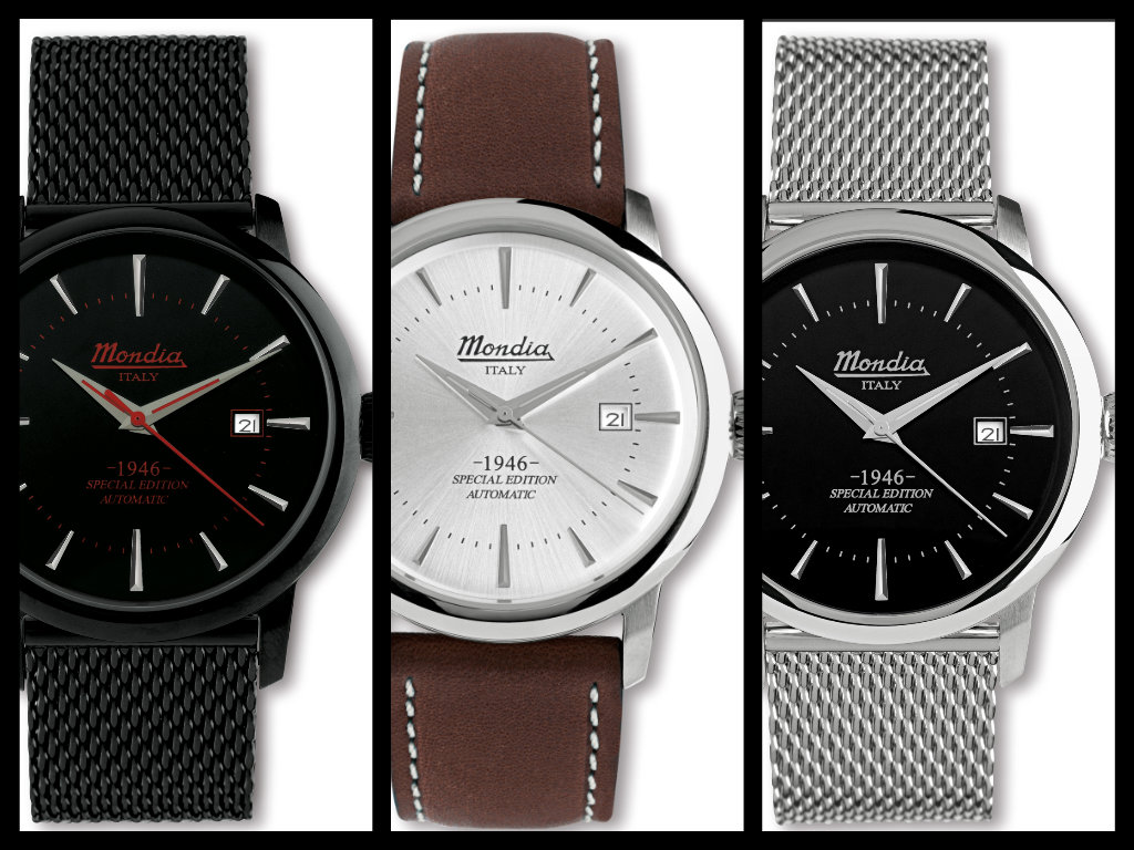 In anni recente dopo una ristrutturazione e passaggi di proprietà i Mondia sono esposti a Baselworld dove viene presentata un’Edizione Speciale “1946”, anno di riferimento per una pubblicità di questi orologi sulla stampa italiana. Le sette versioni, con cinturino o bracciale a maglia milanese e quadrante silver, blu. black, champagne, hanno la cassa ø 41 mm in acciaio o trattata PVD nero o oro rosa; movimento automatico Miyota 821A.